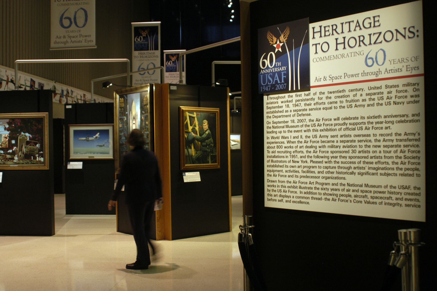 DAYTON, Ohio - USAF 60th Anniversary art exhibit "Heritage to Horizons: Commemorating 60 Years of Air & Space Power Through Artists' Eyes" at the National Museum of the U.S. Air Force (U.S. Air Force photo)