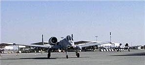 Deployed to bases along the Persian Gulf, Coalition aircraft like this USAF A-10 Thunderbolt II enforce the Operation Southern Watch no-fly zone. This A-10 was assigned to the 74th Fighter Squadron, Pope Air Force Base, N.C., and flew from Al Jaber Air Base, Kuwait. (U.S. Air Force photo)