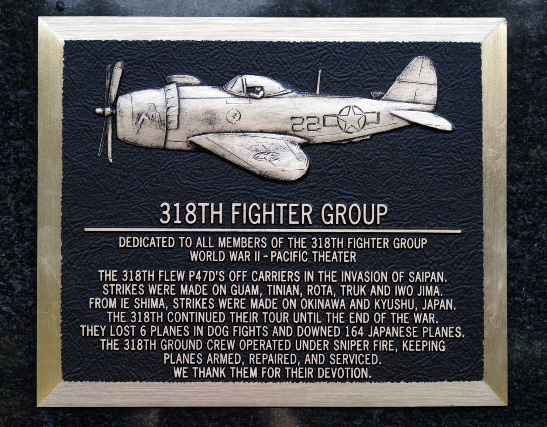 DAYTON, Ohio - 318th Fighter Group plaque in Memorial Park at the National Museum of the U.S. Air Force. (U.S. Air Force photo)